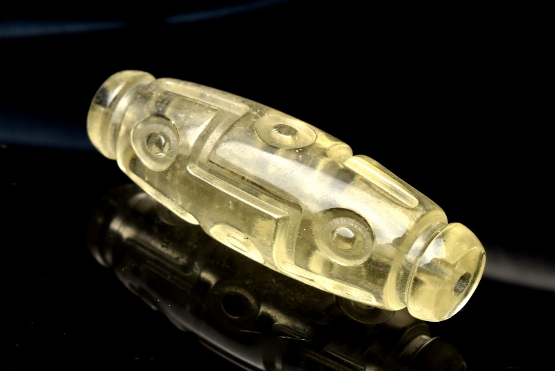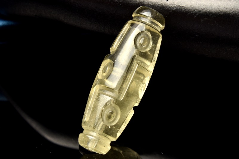 【1点物】AAA激レア☆透明レモンカラー リビアングラス 29x9mm 九眼天珠 ビーズ _PC4556