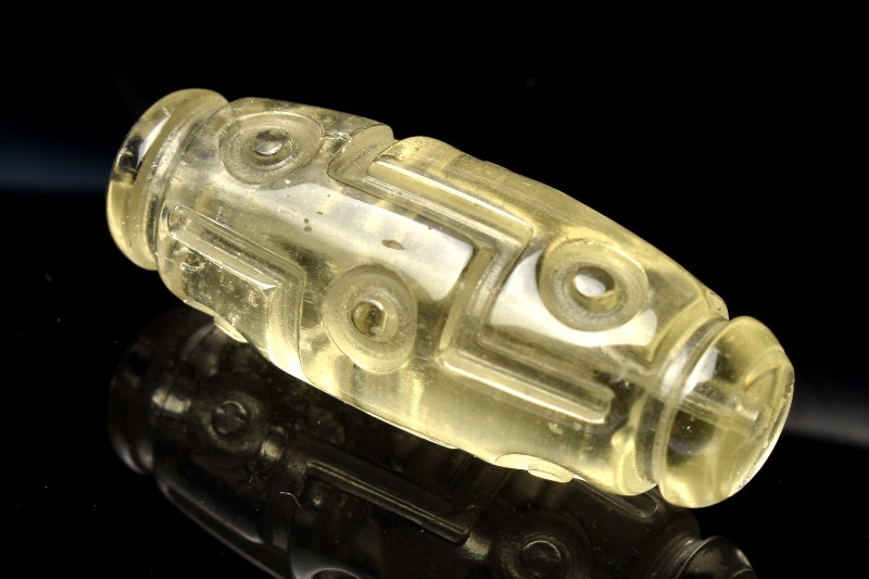 【1点物】AAA激レア☆透明レモンカラー リビアングラス 28x11mm 九眼天珠 ビーズ _PC4560