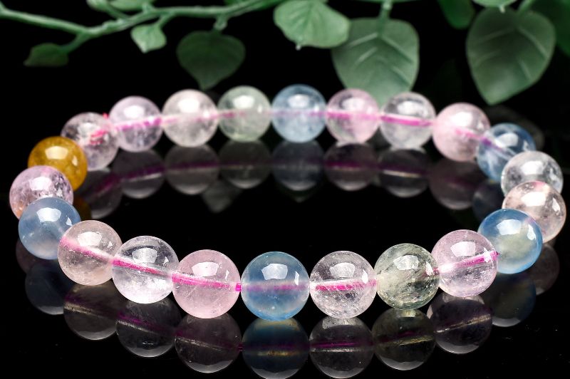 【1点物】AA+☆マルチカラー MIXベリル(アクアマリン) 8.5mm ブレスレット _U6785