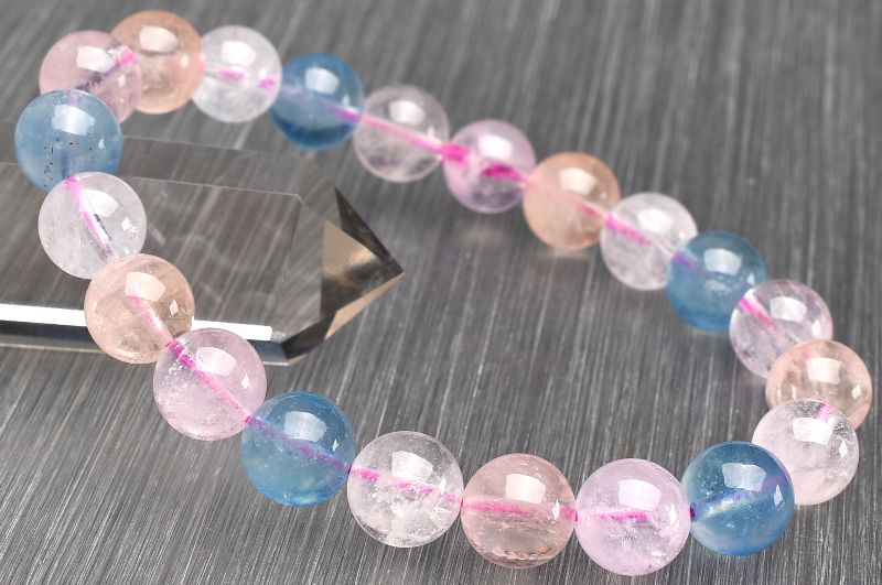【1点物】AA+☆マルチカラー MIXベリル(アクアマリン) 9mm ブレスレット _U6788
