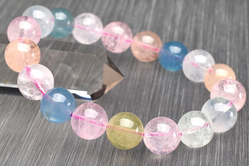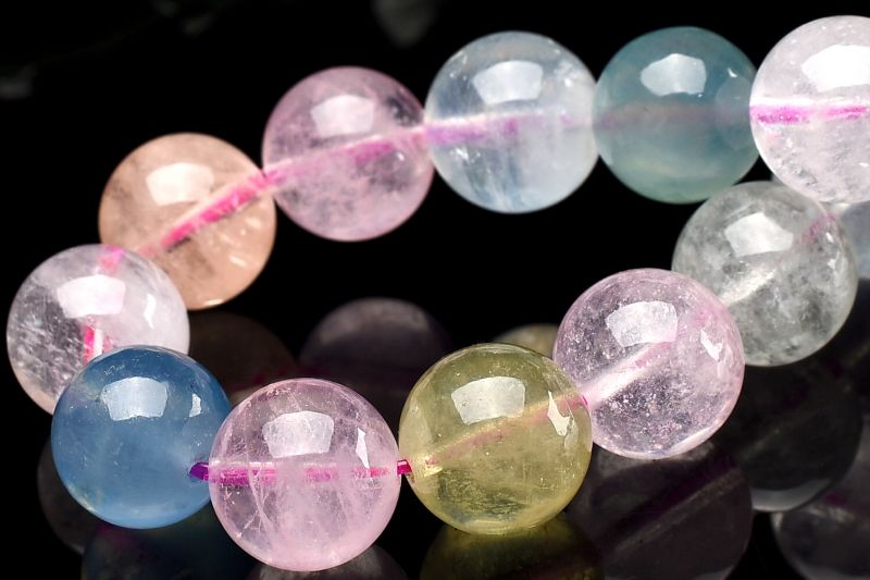 【1点物】AA+☆マルチカラー MIXベリル(アクアマリン) 11mm ブレスレット _U6793