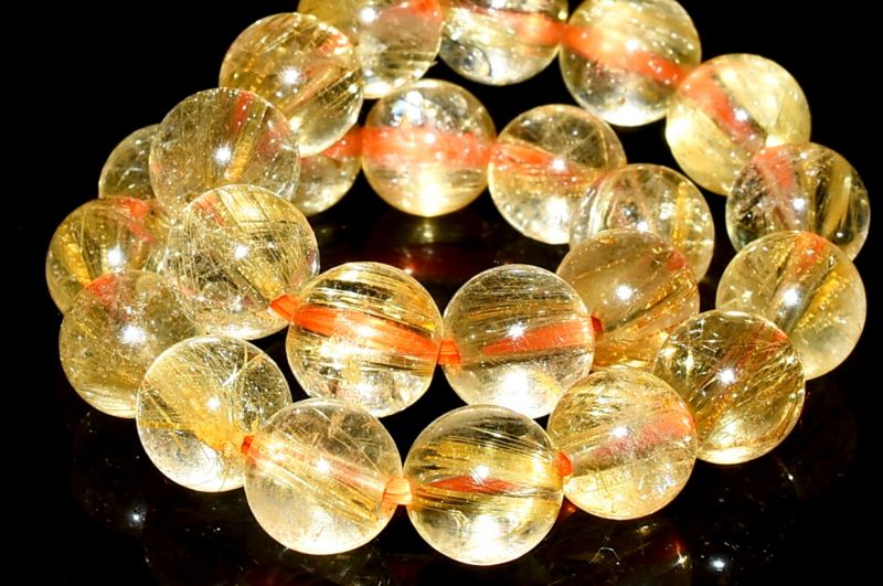 材質ゴールドタイチンルチルクォーツ 7.5mm 産地:ブラジル