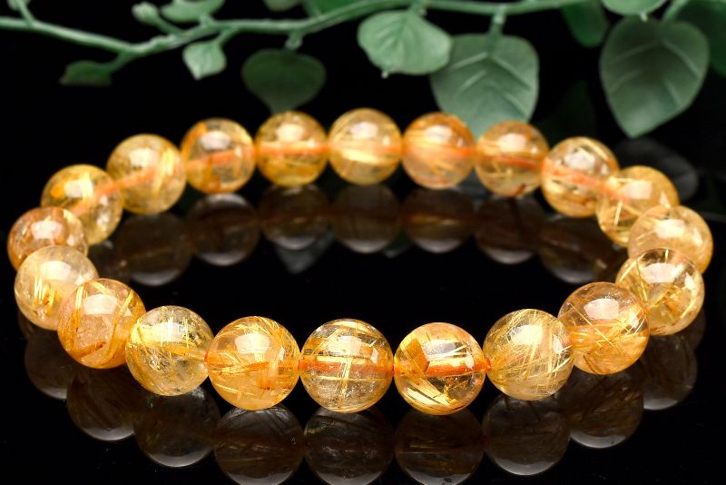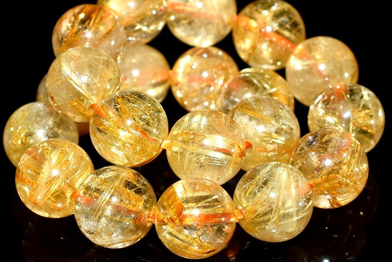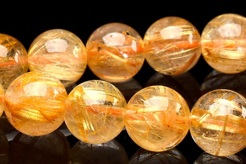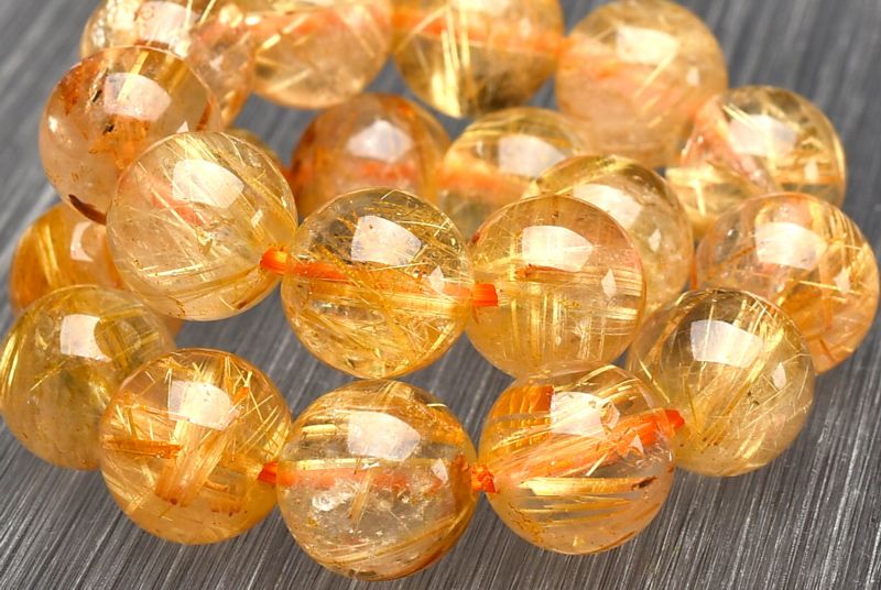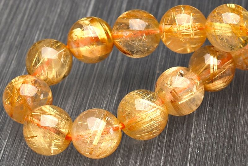 材質ゴールドタイチンルチルクォーツ 9.5mm 産地:ブラジル