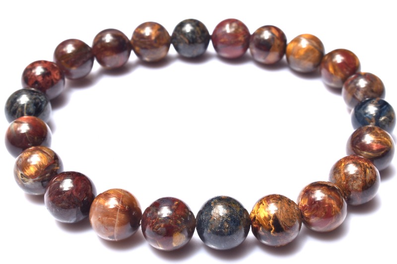 一般的にはタイガーアイ系の茶褐色が多いですが、ブルータイガーの青系もあり、茶と青の混じったものもあります。