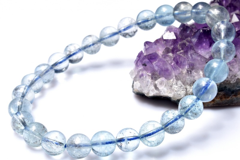 【1点物】氷のような質感 アクアマリン 6.5mm ブレスレット _MA5352