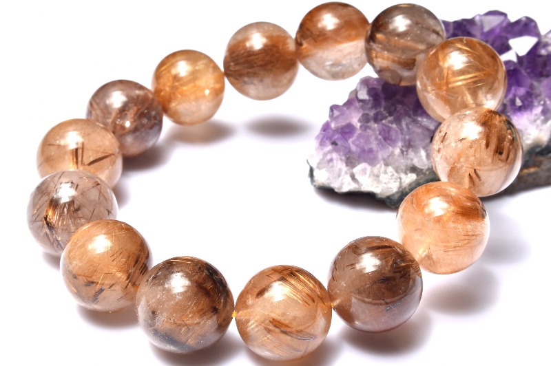 材質タイガータイチンルチルクォーツ 15-15.5mm 産地:ブラジル