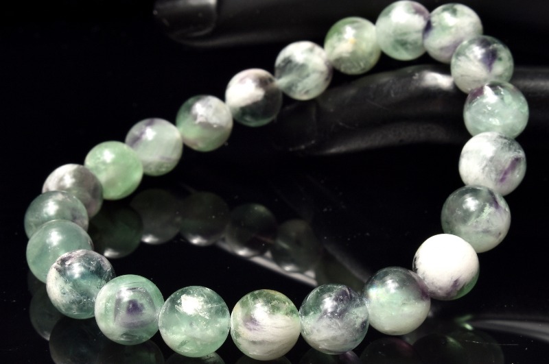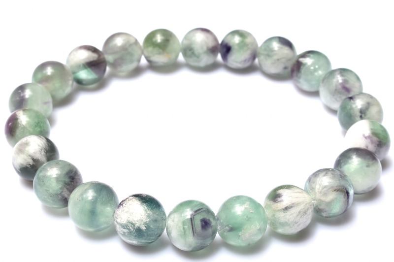 【1点物】幻想的◇白い羽根 フェザーインフローライト 9mm ブレスレット _MA5402
