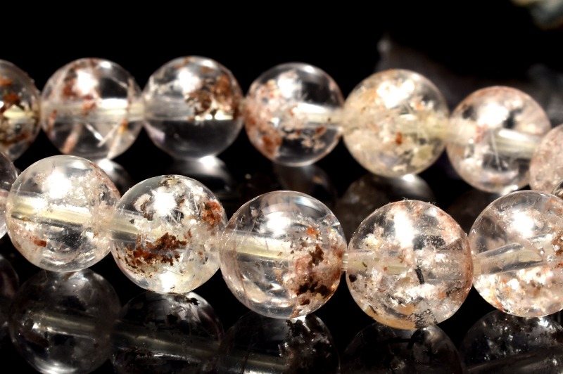 珠によっては雪のように白いトルマリン針が共生しているレアなタイプもございます。