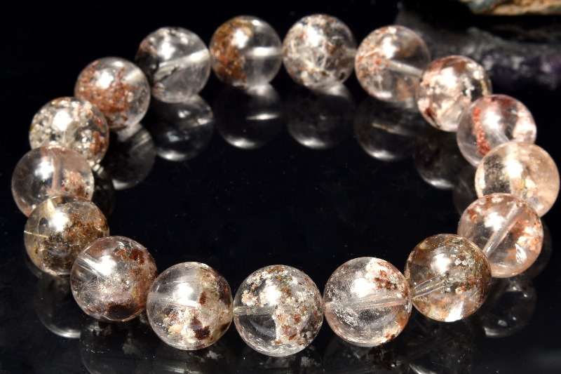 【1点物】レア共生タイプ◇ホワイトトルマリン入り ガーデンクォーツ 12.5mm ブレスレット _MA5422