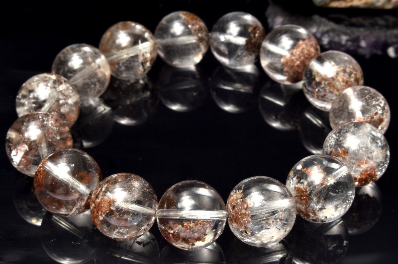 【1点物】レア共生タイプ◇ホワイトトルマリン入り ガーデンクォーツ 14-15mm ブレスレット _MA5423