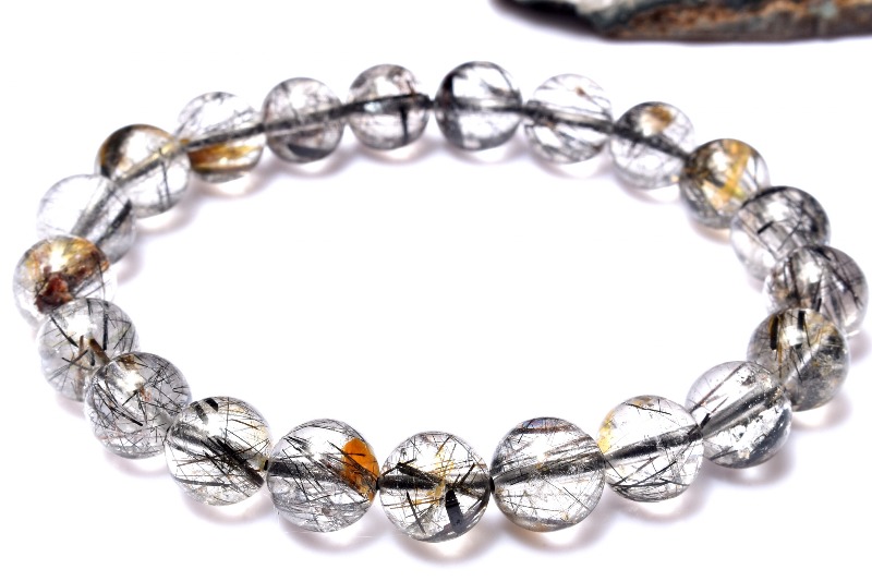 【1点物】ライモナイト入り ブラックトルマリンインクォーツ 9mm ブレスレット _MA5462