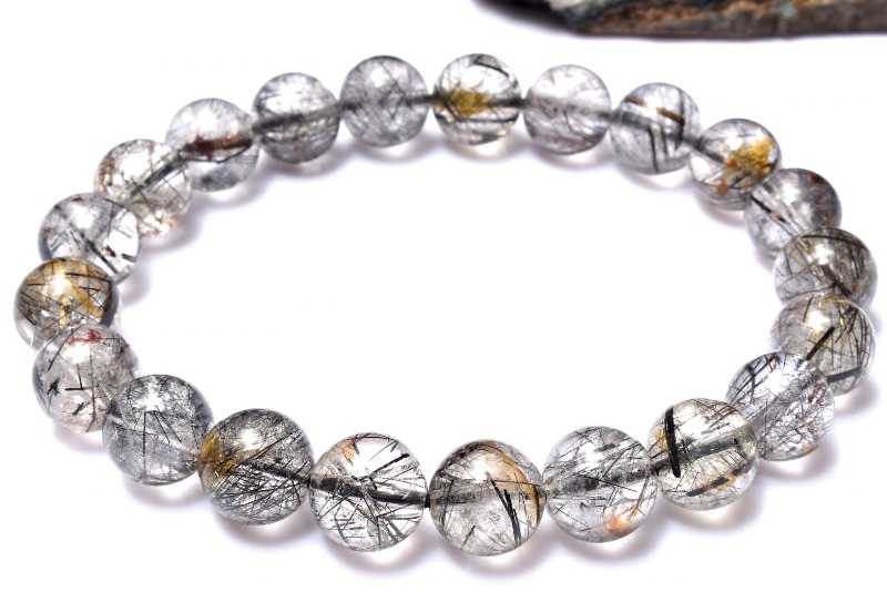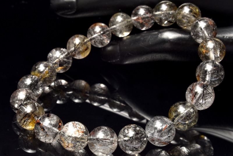 材質ブラックトルマリンインクォーツ 9.5mm 産地:ブラジル