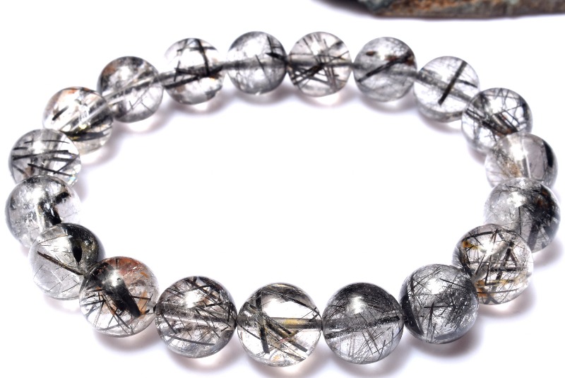 材質ブラックトルマリンインクォーツ 10.5mm 産地:ブラジル