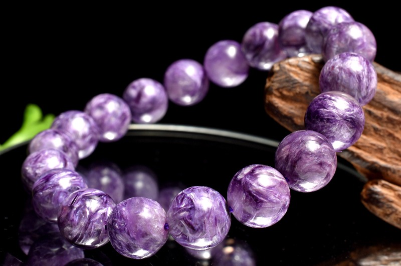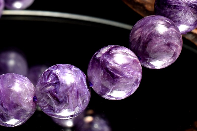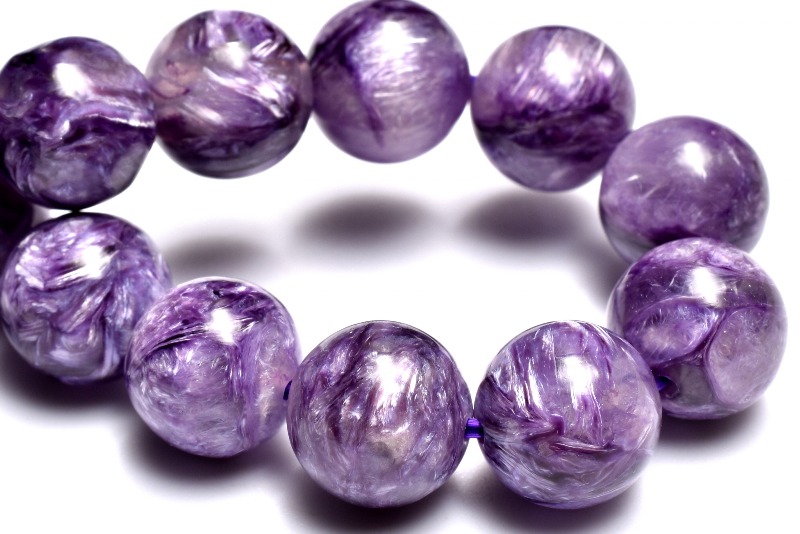 チャロアイトという名前の由来には、シベリアのチャロ川流域で発見された事とする説と、ロシア語の(Charo魅惑)から名づけられたという説がありますが、後者の方が有力であるとされています。その名の通り、この石の個性的な模様は、見る人を魅了してやみません。まさに、「魅惑の宝石」にぴったりな石です。