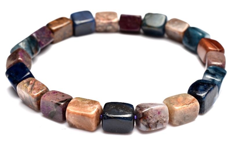 【1点物】厳選◇希少カラー入り! スギライト(杉石) 8.5-10x6-7mm レクタングルチューブカット ブレスレット _MA5552