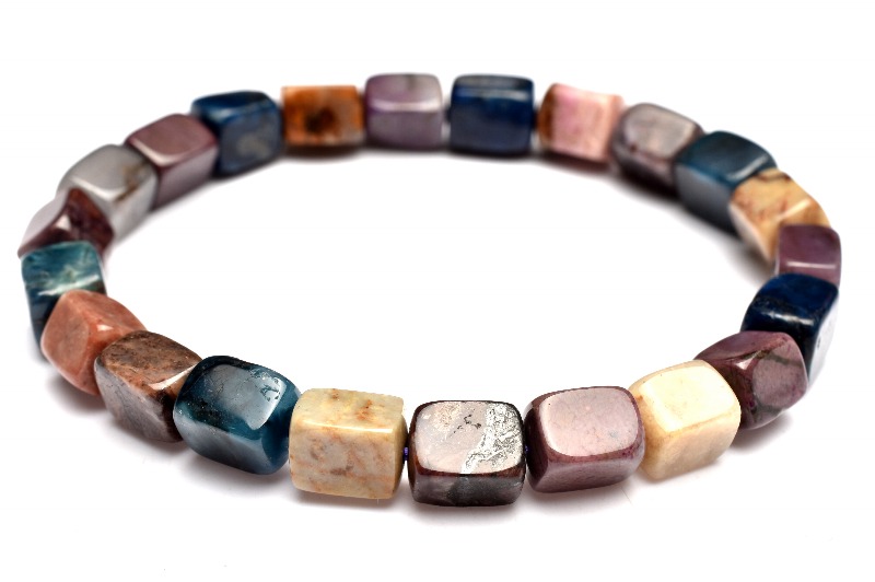 【1点物】厳選◇希少カラー入り! スギライト(杉石) 8-9x5.5-7mm レクタングルチューブカット ブレスレット _MA5553
