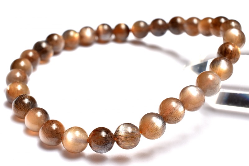 【1点物】2つの輝き◇インド産 ブラックサンムーンストーン 6mm ブレスレット _MA5601