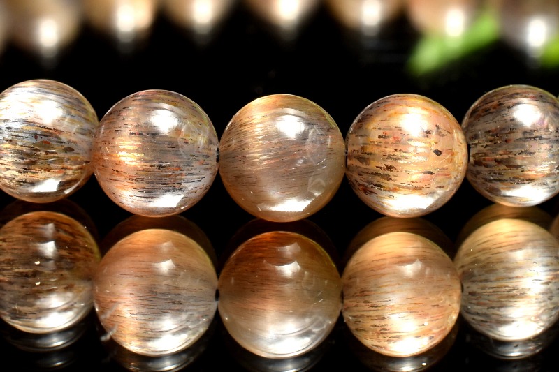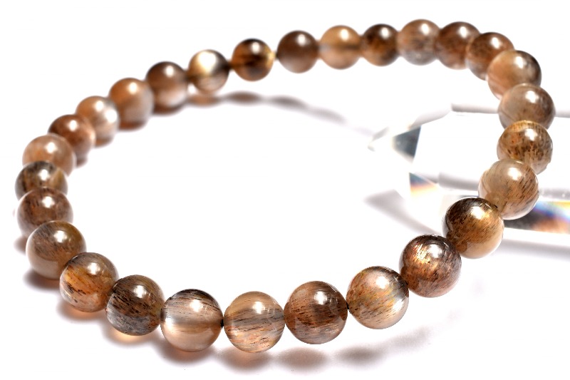 【1点物】2つの輝き◇インド産 ブラックサンムーンストーン 7mm ブレスレット _MA5602