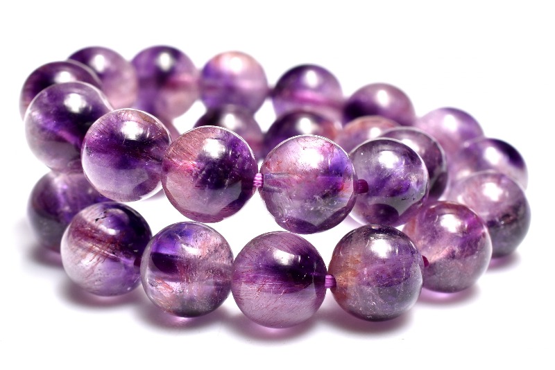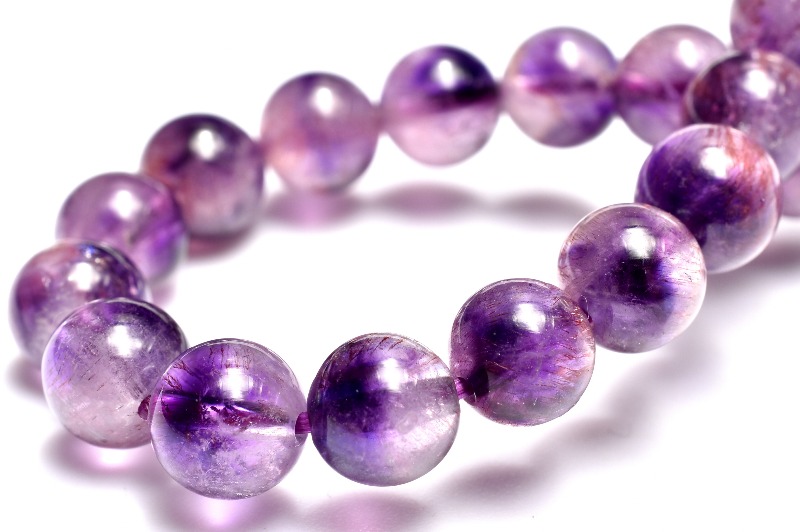 パワーストーンの定番アメジストに、細かなゲーサイトやレピドクロサイトが入っているアメジストスーパーセブンです。