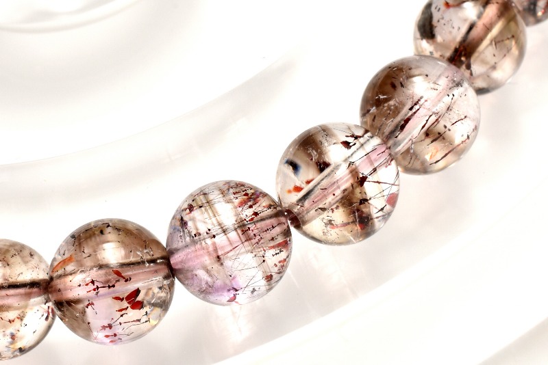 スーパーセブンとは、水晶にアメジスト・スモーキークォーツ・カコクセナイト・ルチルクオーツ・ゲーサイト・レピドクロサイトなどが内包された鉱物の通称名です。