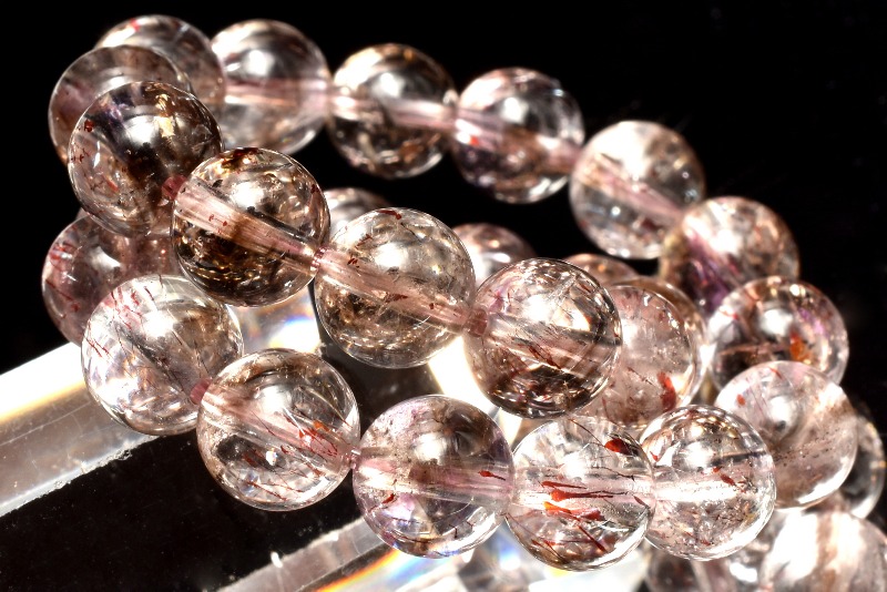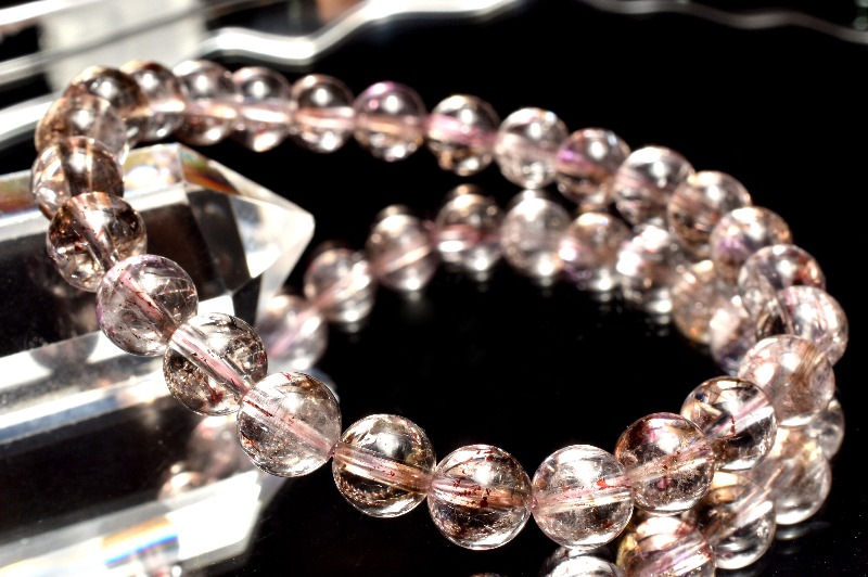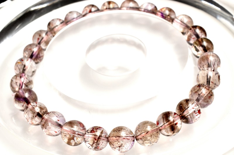 パワーストーンの定番アメジストに、細かなゲーサイトやレピドクロサイトが入っているアメジストスーパーセブンです。