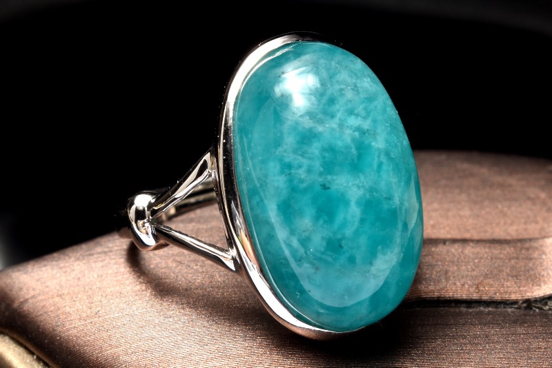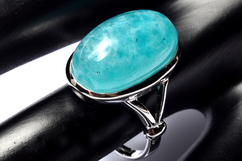 アマゾナイトのブルーとシルバー枠の相性が良く上品な印象の指輪です。