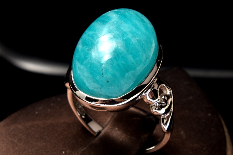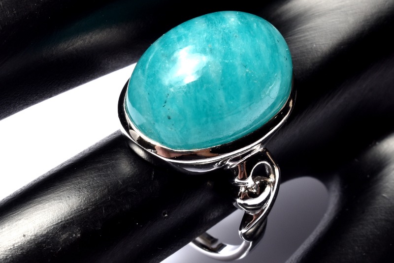 アマゾナイトのブルーとシルバー枠の相性が良く上品な印象の指輪です。