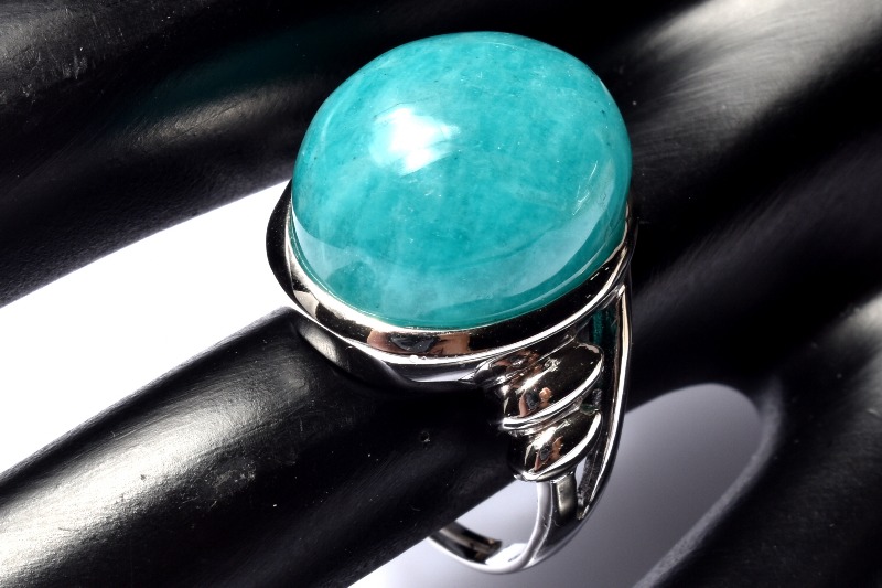 アマゾナイトのブルーとシルバー枠の相性が良く上品な印象の指輪です。