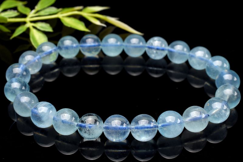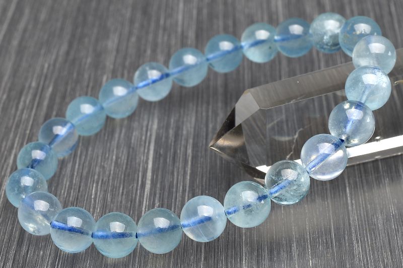 【1点物】透明感◇ライトブルー アクアマリン 8mm ブレスレット _U6840