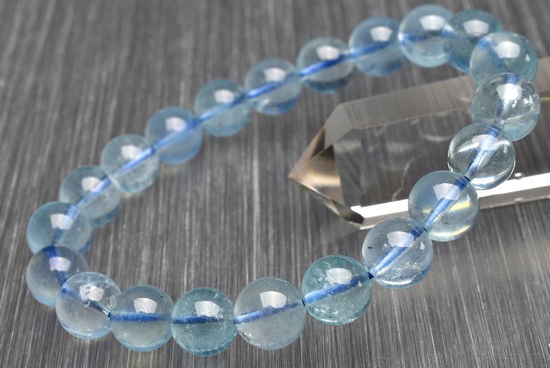 【1点物】透明感◇ライトブルー アクアマリン 9mm ブレスレット _U6844