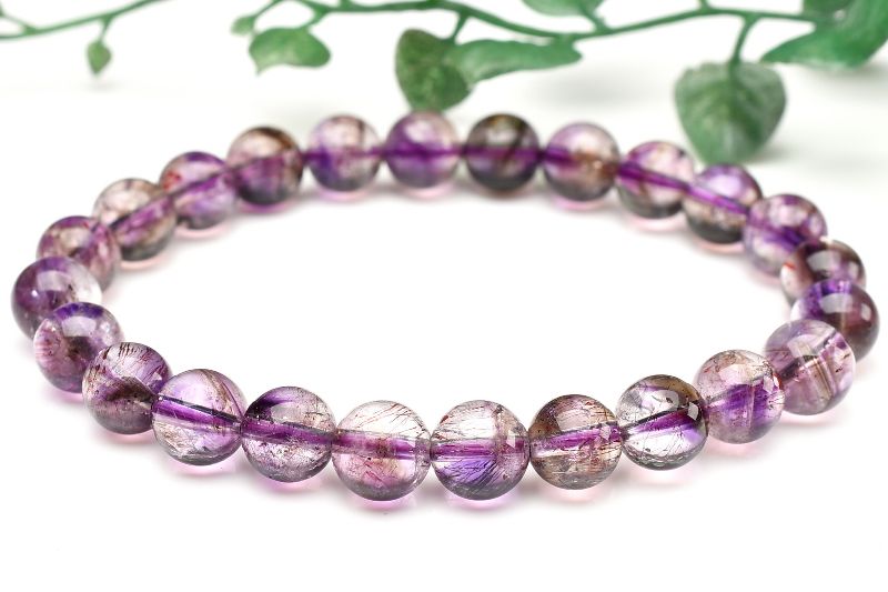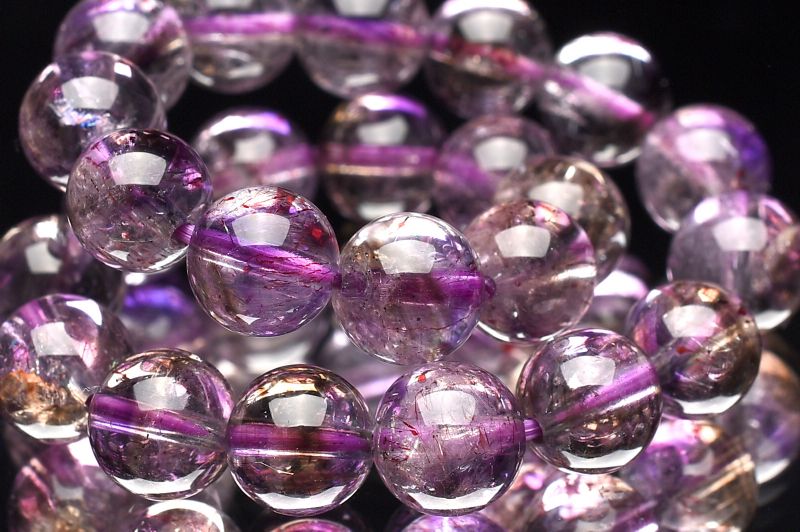 パワーストーンの定番アメジストに、細かなゲーサイトやレピドクロサイトが入っているアメジストスーパーセブンです。