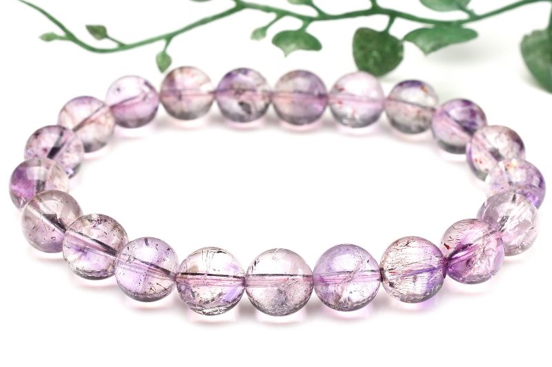 パワーストーンの定番アメジストに、細かなゲーサイトやレピドクロサイトが入っているアメジストスーパーセブンです。