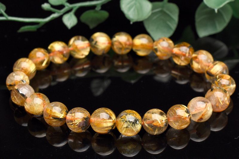 材質ヘマタイトインタイチンルチルクォーツ 8mm 産地:ブラジル