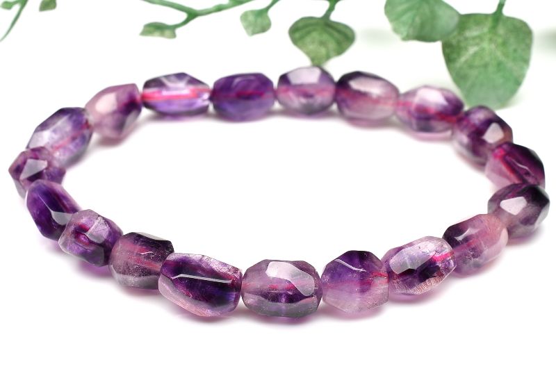 【1点物】キャンディーのよう アメジストスーパーセブン 8-12x6-8mm 原石ラフカット ブレスレット _U6909