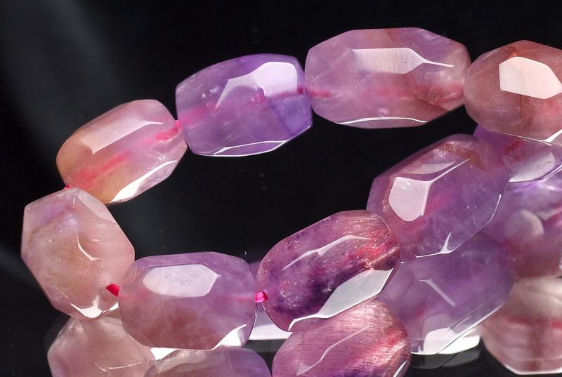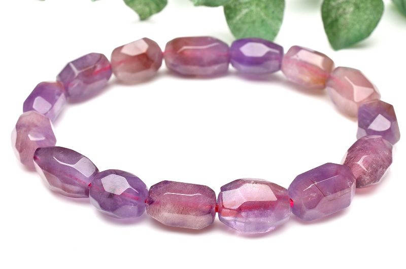 パワーストーンの定番アメジストに、細かなゲーサイトやレピドクロサイトが入っているアメジストスーパーセブンです。