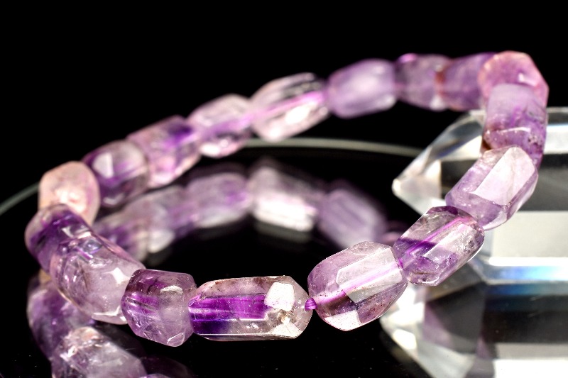パワーストーンの定番アメジストに、細かなゲーサイトやレピドクロサイトが入っているアメジストスーパーセブンです。