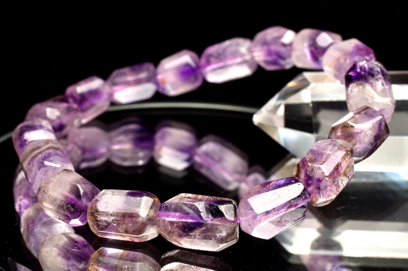 パワーストーンの定番アメジストに、細かなゲーサイトやレピドクロサイトが入っているアメジストスーパーセブンです。