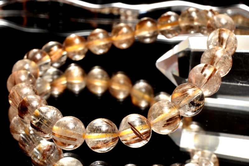材質タイガータイチンルチルクォーツ 8mm 産地:ブラジル
