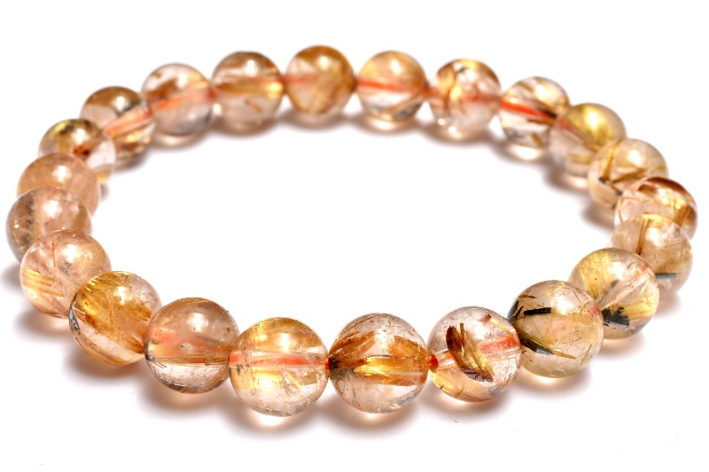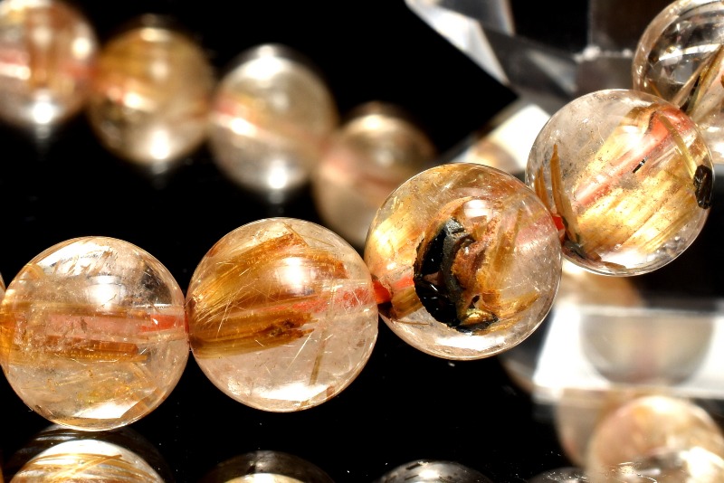 材質ヘマタイトインタイチンルチルクォーツ 9-9.5mm 産地:ブラジル