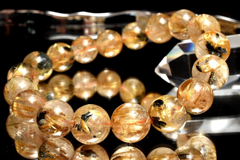 材質ヘマタイトインタイチンルチルクォーツ 11-11.5mm 産地:ブラジル