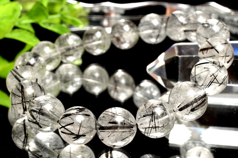 材質ブラックトルマリンインクォーツ 11mm 産地:ブラジル