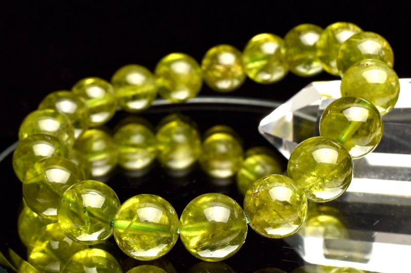 【1点物】AAA☆希少大珠 ペリドット(橄欖石) 10-10.5mm ブレスレット _MA5987