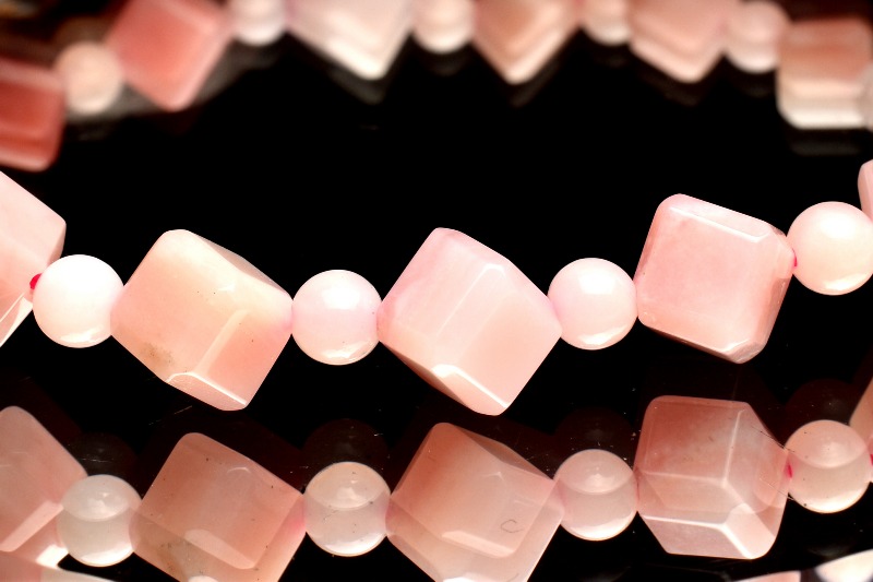【1点物】高品質◇桜色 ピンクオパール 8-9(丸玉4)mm キューブ ブレスレット _MA5992