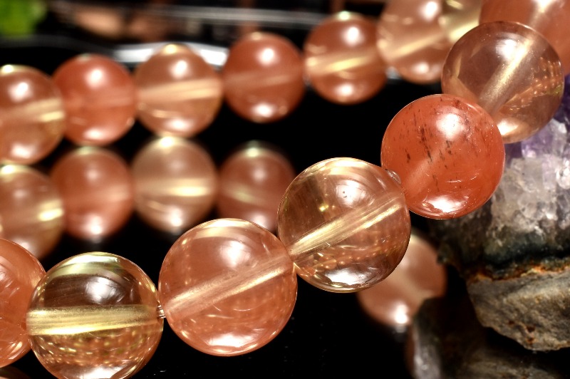 【1点物】チベット産◇ピンクシラー アンデシン 9.5mm ブレスレット _MA6008
