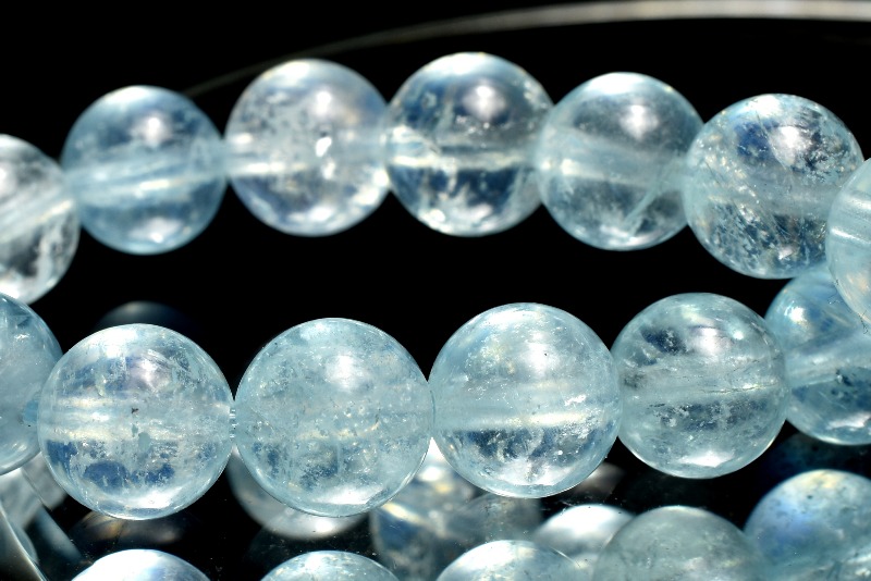 【1点物】キラキラAAA☆新疆ウイグル産 アクアマリン 7.5mm ブレスレット _MA6049
