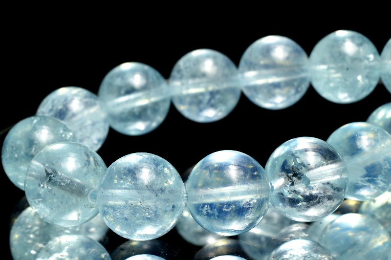 【1点物】キラキラAAA☆新疆ウイグル産 アクアマリン 9.5mm ブレスレット _MA6053
