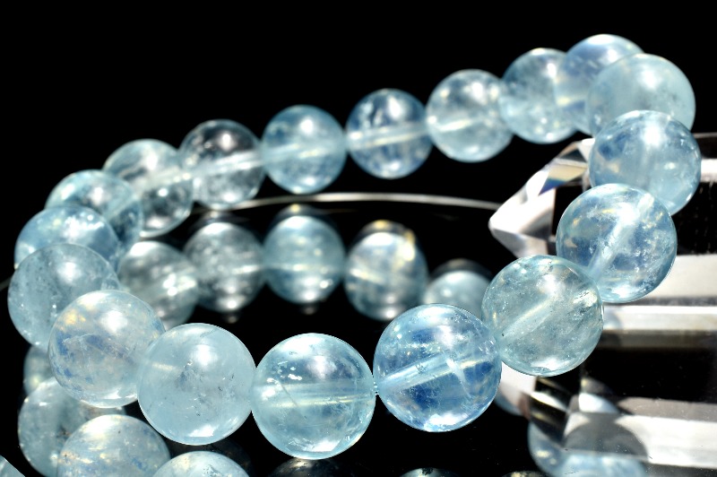 【1点物】キラキラAAA☆新疆ウイグル産 アクアマリン 11mm ブレスレット _MA6055