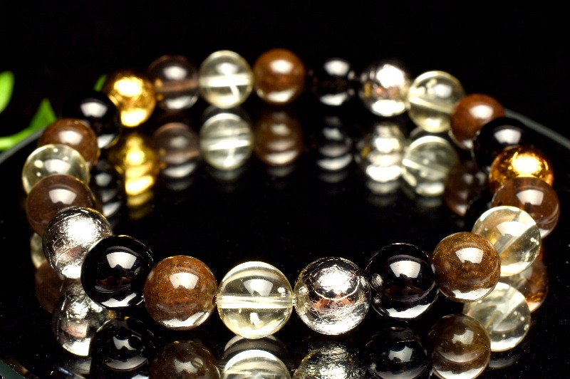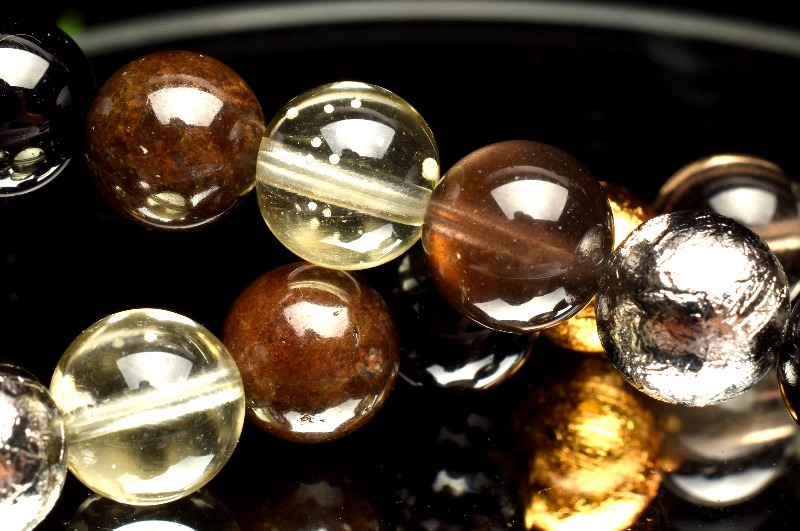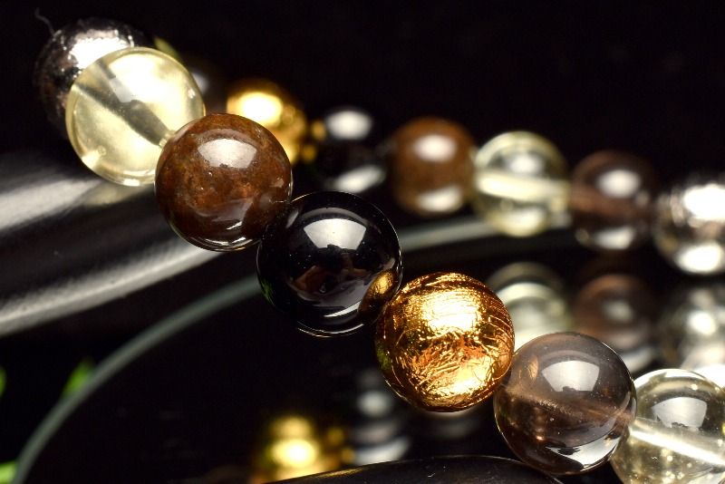 【1点物】贅沢◇宇宙のパワー MIX隕石(アルタイ隕石+黒隕石+リビアングラス+コンドライト隕石) 8-8.5mm ブレスレット _MA6066