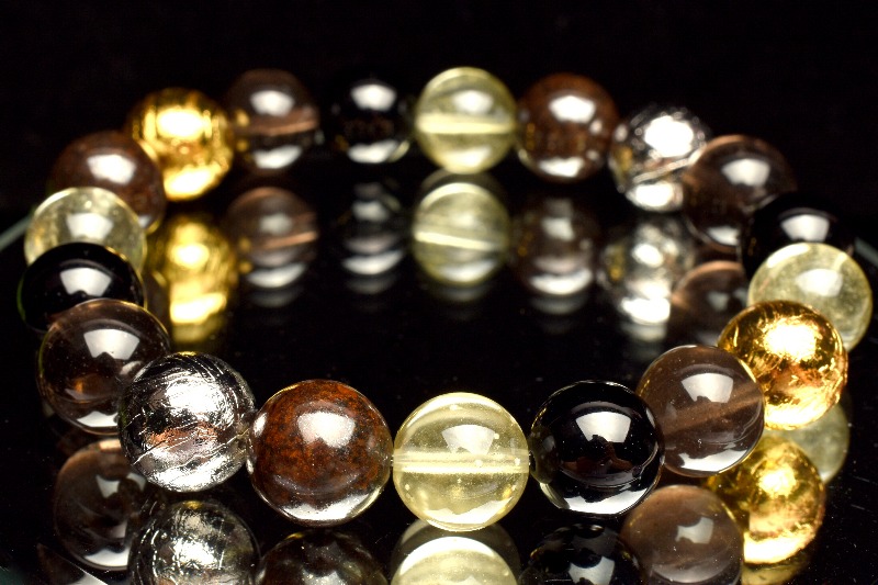 【1点物】贅沢◇宇宙のパワー MIX隕石(アルタイ隕石+黒隕石+リビアングラス+コンドライト隕石) 10-10.5mm ブレスレット _MA6068