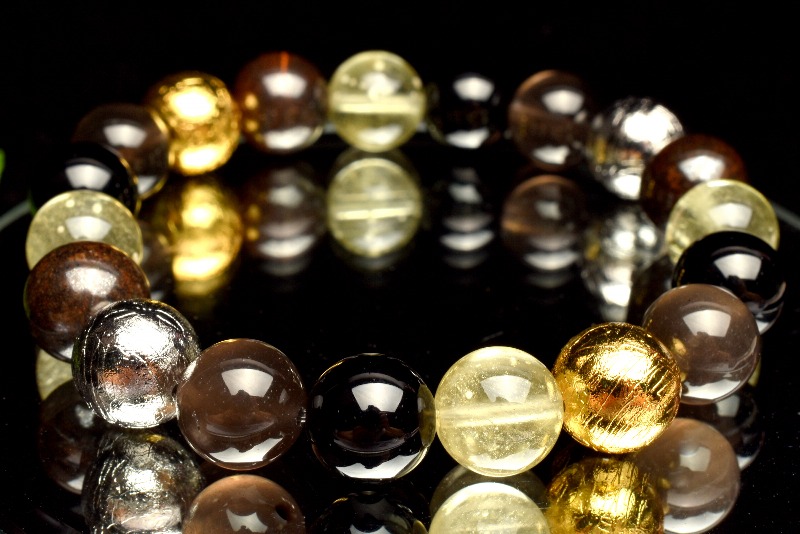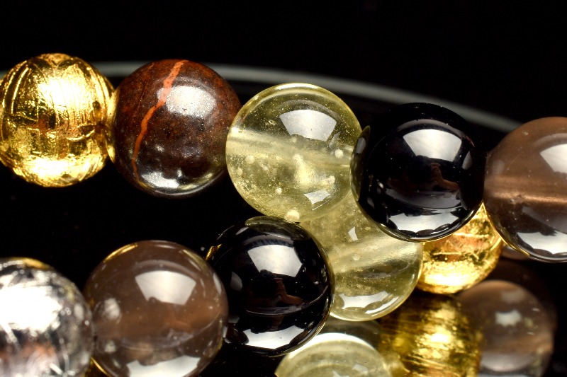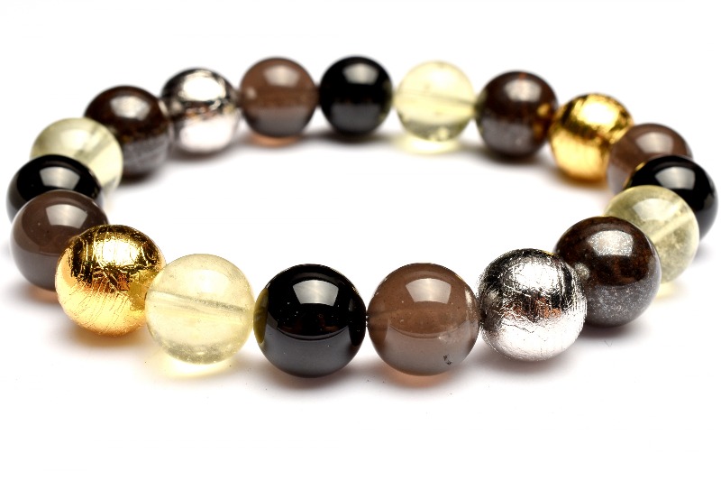 【1点物】贅沢◇宇宙のパワー MIX隕石(アルタイ隕石+黒隕石+リビアングラス+コンドライト隕石) 10-10.5mm ブレスレット _MA6069